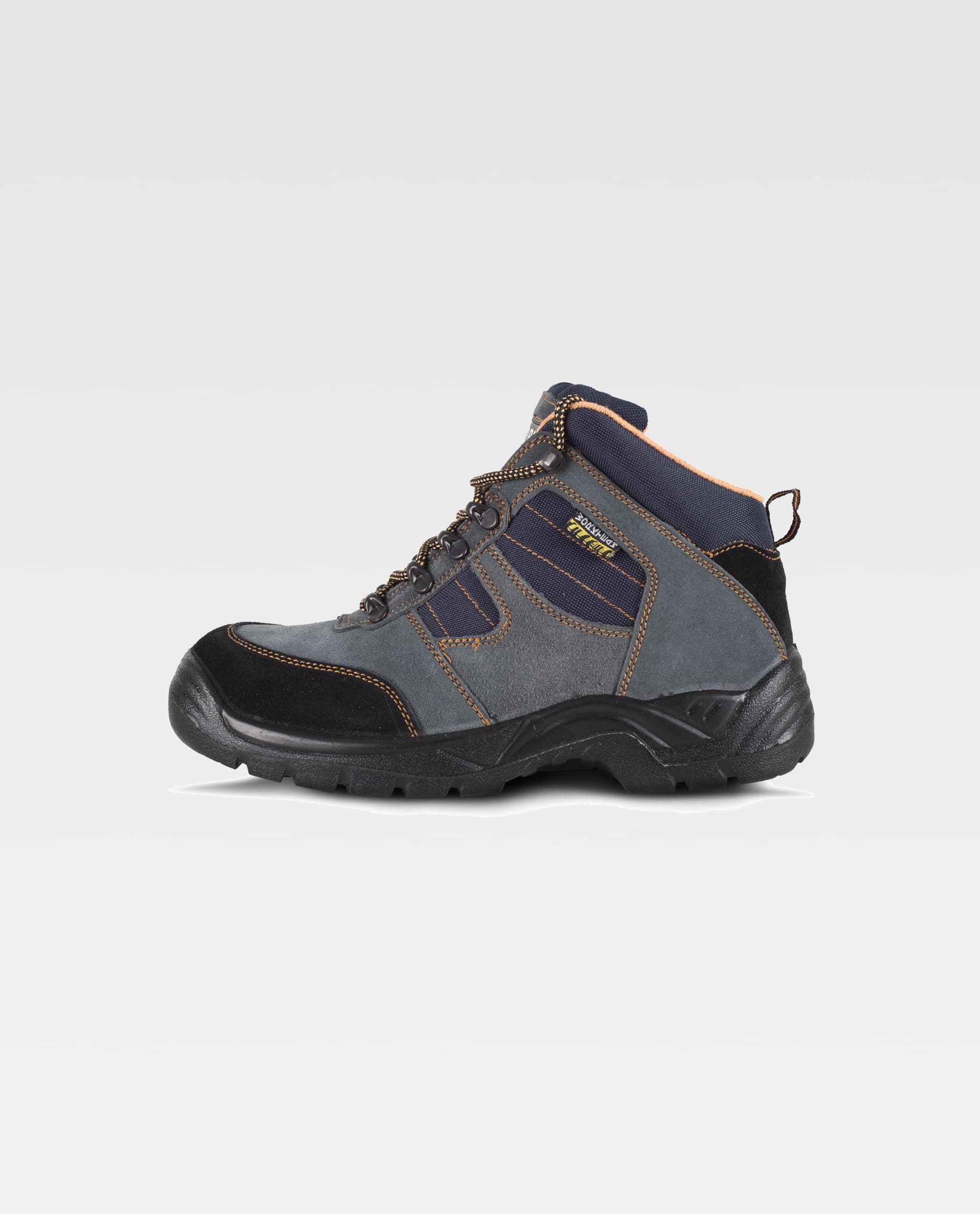 Mockastövel med snörning. vandringstyp. Bi-density PU-sula. Stålspets och sula. Antistatiska egenskaper. Energiupptagning i hälområdet. Kolvätebeständig. Punkteringsbeständig. Halkskydd på keramiska plattor med tvållösning och på stål med glycerin. Mockastövel med snörning. vandringstyp. Bi-density PU-sula. Stålspets och sula. Antistatiska egenskaper. Energiupptagning i hälområdet. Kolvätebeständig. Punkteringsbeständig. Halkskydd på keramiska plattor med tvållösning och på stål med glycerin. S1P SRC.
