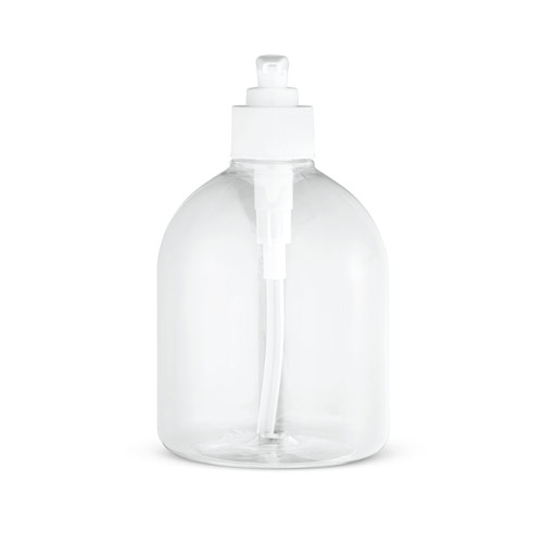 Flaska med dispenser gjord av PE och PP, med en kapacitet på 500 ml. Uppladdningsbar och återanvändbar.ø85 x 150 mm