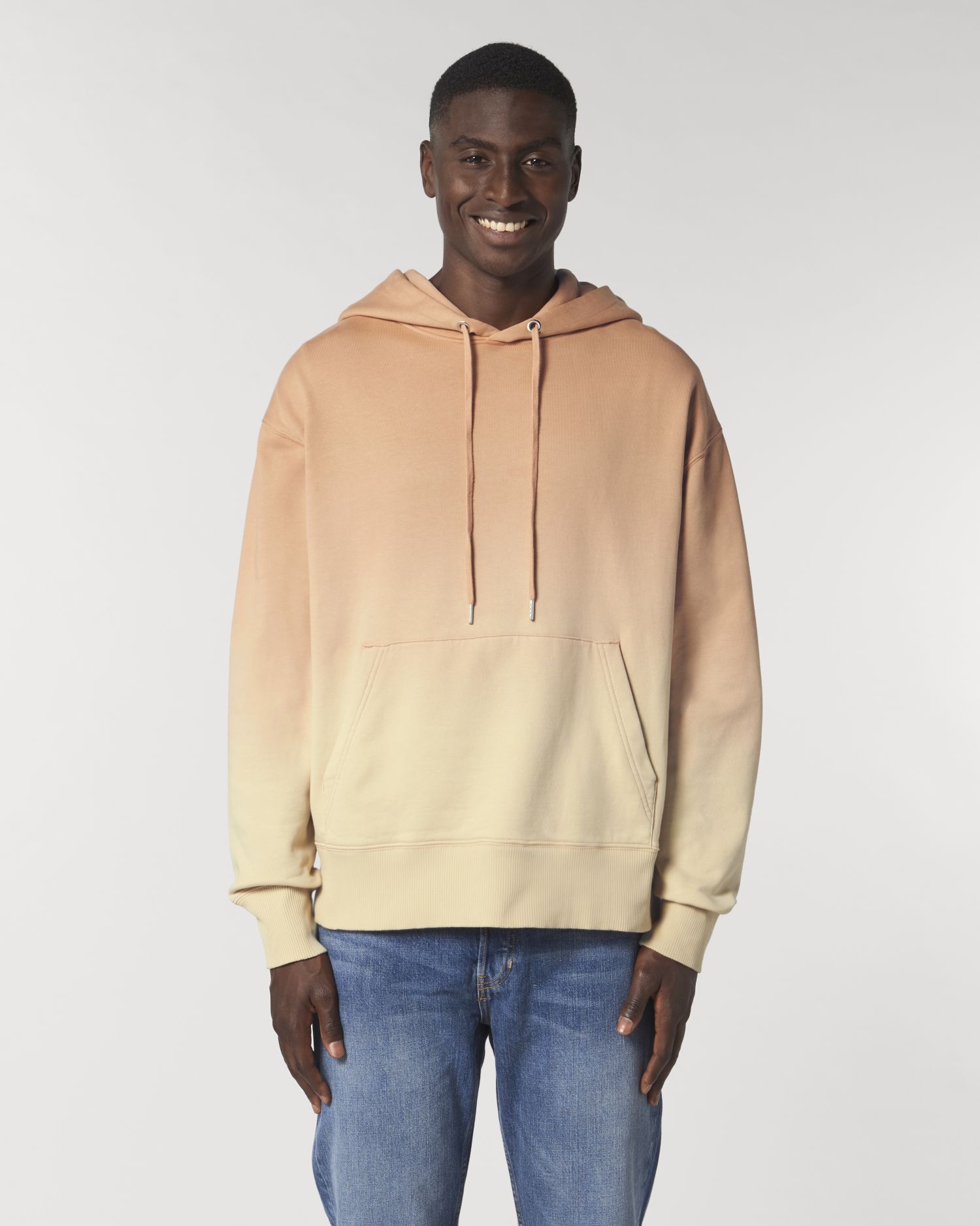 Den lösa unisex-huvtröjan med dip dye-tryck. Löst skuren, Rund hals med huva, Långärmad, Borstad fleece. Closed Sleeves_X000D_ Hood fodrad i huvudet Fabric Flat Drawtring i samma ton färdig med metall-finish tips metall eyelets inre sillbenet i huvudväven singelstygn på Collar 1x1 Ribb på manschetter och Hem_X000D_ Dubbelstygn på ärmhål och Bottom_X000D_ Kangaroo Pocket_X000D_ Produkt med dip dye-tryck, utseendet på varje plagg kan variera, följ skötseletiketten Läs noga tryckrekommendationerna