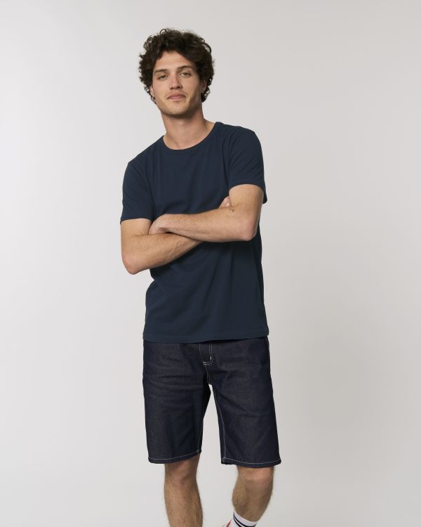 Den lätta t-shirten för honom. Figursydd, rund hals, kortärmad, enkel jerseystickad. Anpassad ärm