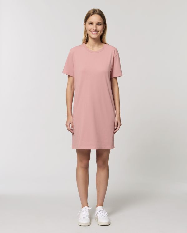 T-shirtklänningen till henne. Normal passform, rund hals, kortärmad, enkel jerseystickad. Påsydda ärmar