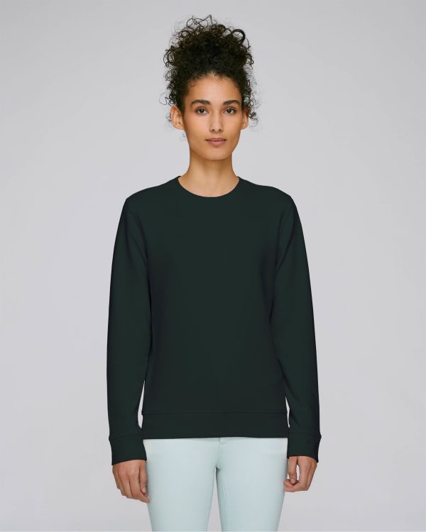 The Essential unisex sweatshirt med rund hals. Figursydd, rund hals, långärmad, icke-borstad fleece. Påsydd ärm 1x1 ribbkrage med enkel söm Invändig fiskbensförspänning på halsen 1x1 ribb på ärmslut och fåll Täcksöm på alla sömmar Innerhalvmåne i huvudtyg