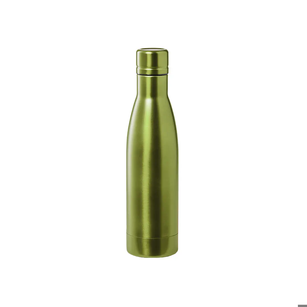 Värmeflaska i rostfritt stål, med dubbelt lager och vakuumkopparisolering. Det låter dig behålla värme och kyla under en längre tid, upp till 12 respektive 48 timmar. 500 ml kapacitet och finns i ett brett utbud av metalliska färger. Presenteras i en snygg designlåda.