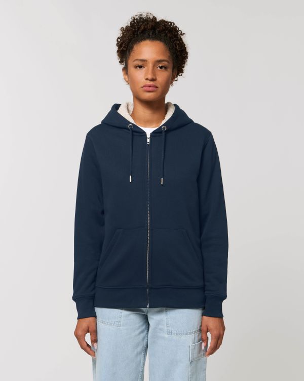 Jackan med huva och dragkedja, shearling foder, unisex. Normalskuren, Rund hals med huva, Långärmad, Oborstad fleece. Stängda ärmar Huva fodrad med återvunnen fleece Rund dragsko, i samma ton, toppad med metallfinish ändar Metalliska öljetter Invändig fiskbensförspänning, ecru, på halsen dragkedja i mitten 0 i mitten 0 dragkedja på 0,000D_0 invändigt tyg, 0,000 Dx fåll Sömmar på alla sömmar Känguruficka Helfodrad med återvunnen fleece Inre bröstficka Inre dragkedja i fållen för att anpassa storleken
